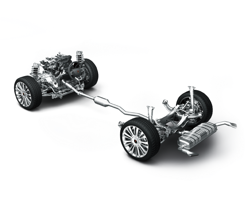 Multi-link independent suspension promoting riding comfortableness and safety.