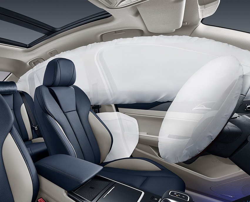 Hongqi H5 front 4 airbags and dual-sides air curtains create you and your family maximum safety in case of any situation with instant response.